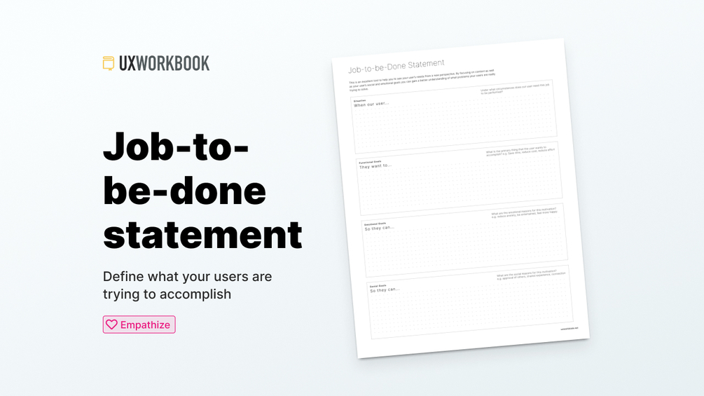 A Jobs-to-be-Done statement will help you to identify and articulate the situation, motivation, and expected outcome for your users.